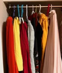 うわぁ綺麗なクローゼット🤩 ハンガーを揃えるだけで、こんなに美しくなる💖 我が家のハンガーはバラバラ、しかも、ぎゅーって押し込んでるから💦 そして殆ど黒ばっかりで、こんなにカラフルじゃないです😅