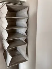 吊り収納 さまざまな 鞄を 以前はクローゼットの上の段の さらに上に置いてましたそして 埃がつくのが嫌で 不織布の袋に入れてました 手は届くので茶色の箱ごと 引っ張り出せば 取り出せるのですが 見た目が良くない🤣🤣 以前から鞄収納どうしようかなぁと考えていたところお