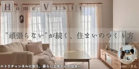 こんにちは!事務局のビルです🏢本日は、ニトリチャンネル📺をいつも盛り上げてくださっているメンバーのおひとり、emi♡さんのご自宅にお邪魔してきました🥰💡今回ご紹介するのは、ただ「素敵なお家」を見るだけの記事ではありません👀✨「これ、真似できそう!」が詰まった暮らしのアイデアを、前編・後編・番外編の