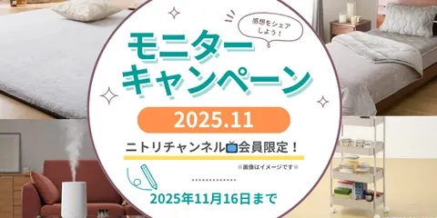 【応募終了】モニター👫キャンペーン🎁 こんにちは!ニトリチャンネル運営事務局✨虎ちゃん🐯です!ニトリチャンネル📺限定のモニターキャンペーンです!(毎月5名の方に、抽選でモニター商品をお配りし、モニターレポートをお願いしております)7月も、モニター様を募集いたします♬🤗お渡しするモニター商品の発表と、応募方法をご紹介します🙊下記対象商品の