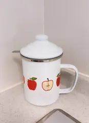ホーローオイルポット ニトリデコ行ったら🌟♡𝑵𝑬𝑾♡🌟のPOPが😊何〜何〜って👀✨パッと見たらめちゃかわいいホーローオイルポット発見☺️レトロ感がかわいくて〜🍎✨娘と2人で一目惚れ🤩買っちゃいました😘