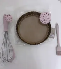 お菓子作り用品 娘とニトリデコ行ったらめちゃかわいいピンク色の⸜❤︎⸝シリコンハケ⸜❤︎⸝スクレーパー付きの泡立て器⸜❤︎⸝タルトケーキ型🥧あったので購入してきました☺️家にあるタルト型は少し小さめなので大きめのタルト型が欲しかったので見つけた瞬間〜カゴに🤭即購入しちゃいました😘 シリコンハケと泡立