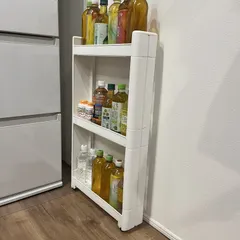 スリムワゴン♩ 500mlペットボトルのストック置き場として、ニトリで購入したスリムワゴンを使ってます! 幅約12センチで壁と冷蔵庫の隙間にピッタリ♡ 下にキャスターが付いていて出し入れもしやすく、重宝しています☺︎ https://www.nitori-net.jp/ec