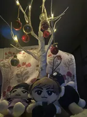 シラカバツリー💜💚🐼 もうすぐクリスマスですね🎄✨去年は🎁の飾りだったんですけど、先月ニトリ行った時にこの飾りを見つけて買ったので、付けました☺️✨ ☃️のクリスマスソングがYouTubeで聴けるのでもし良かったら、聴いてみてください😊