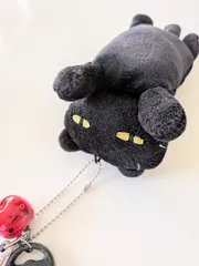 デコネコチャーム🖤 デコホームのデコネコ大人気ですね❣️あの切れ長の目がなんとも言えない表情で…もれなく嵌っている私ですが昨年、デコネコの「着る毛布」をプレゼントされる機会がありまして、それに付いていたデコネコが愛くるしく🥰何処にでも連れて行きたくてチャームにしちゃいました! ボールチ
