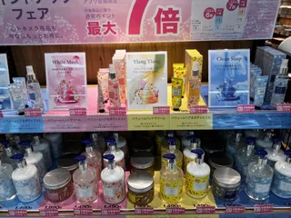 香りを楽しむ~🪄 コレ LIVEで見たやつだ~💛全ての香りをクンクン🐶(笑)わたしは 黄色いパッケージのYlang Ylangが一番好き💕ココにもリラックスコーナーが💕いい香りだなぁ~と ぐーーーんと伸びをして 上を見上げると……??!!上の方から デコネコちゃんに 見張られてた!!😁🤣😁