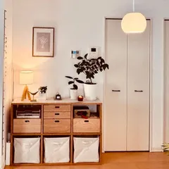 本部 Georgeさん ベージュとホワイトでコーディネートを しています。 元々付けていたカーテンがグレーだったので、おもちゃの色味もグレーを選んでます。 派手な物は隠して収納してます。 赤ちゃんの物はカラフルな物が多いので、隠す収納をしてお部屋のコーディネートを崩さない様にしました! ニトリネットで
