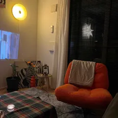 この部屋のコンセプトは、五感で感じる自分力120%です! 朝は、ブラインドの隙間からこぼれる光が今日の始まりをすっと整えてくれる。 夜は、温白色の間接照明が疲れた心を溶かしていく。ラグの柔らかさも、ソファの沈み込みも、お気に入りの紅茶の香りも、プロジェクターに映る映画も。すべて自分の感性を満たすため