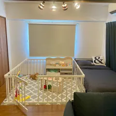 イオンモール沖縄ライカム店 Reiponさん 赤ちゃんの成長を見守りながら、家族全員がリラックスして過ごせるお部屋。部屋の中央に木製ベビーサークルを174×174cmの最大サイズで設置。またキッズプレイマットは2つ繋げることで、ハイハイ期でものびのびと遊べる空間を確保しました。 ニトリネットでチェック