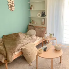 ファーやNウォームを使用した素材へ 模様替えしました。 ラグもクッションもお布団もふわふわで、 どこででも快適にゴロゴロできます。 ニトリネットでチェック