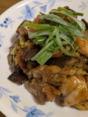 〈材料〉冷凍鶏もも肉 200g(カット済のもの)ナス 2本ネギ白い部分 1本ネギ青い部分 適量片栗粉 適量A醤油 大さじ1Aフルビネ 大さじ1Aみりん 大さじ1Aオイスターソース大さじ1ごま油 大さじ3くらい???〈つくり方〉①鶏もも肉を冷凍シ