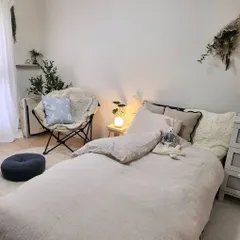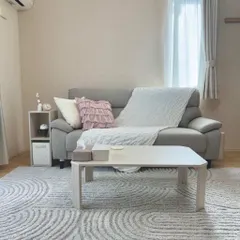 大垣店 yumichiさん シンプルフェミニンをイメージしたリビングです。モカ色のソファに白いクシュクシュケットをかけることで、明るい雰囲気のお部屋を目指しました。 壁に飾るポスターやお花のガーランドを何にしようか検討中です💭🌷 ニトリネットでチェック