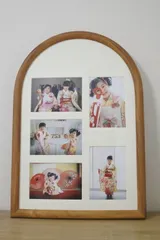 七五三の思い出をフォトフレームに 七五三の前撮りのアルバムと写真データが届いたので、ニトリでフォトフレームを購入して写真を入れてみました。 【アーチ型フォトフレーム】こちらは実家の壁掛け用に✨ 商品コード等はこちら↓おしゃれで可愛いです。 2Lの写真はアクリルフォトフレームにいれて、スタジオで購入したフ