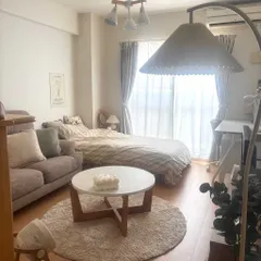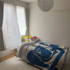 旭店 SCさん マットレスを自分好みのものにするだけで 睡眠の質が変わりました。 低彩度のグレーをメインカラーにして、 落ち着ける空間をつくりました! 照明は電球が直接目に触れないよう、カバーがついたタイプのペンダントライトを選びました。 リビングのアソートカラーであるブルーを寝室にも取り入れることで、家全体で見た
