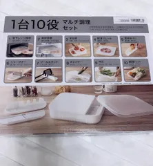 ニトリネット見てたらめちゃ欲しくなって🙈『1台10役マルチ調理セット』買ってみました😊ひとつで10役も〜😀①電子レンジ調理②保存容器③まな板④解凍プレート⑤薬味おろし⑥シャープナー⑦ツールスタンド⑧スライサー⑨ザル⑩調理バット1台でこんなにたくさん使えるなんて〜🙈嬉し過ぎます💗お料理するのがわくわく