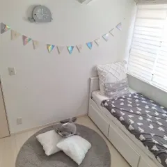 おしゃれな子供部屋コーディネートスタイル:シンプルホワイト×グレーニトリネットでチェック