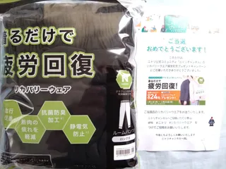 我が家にも嬉しいプレゼントが届きましたずっと気になっていた商品だったので凄くうれしいです家族でも話をしていたリカバリーウエアです高額で躊躇していましたがニトリさんでは2000円価格も凄くうれしい価格ですひざを痛めてから下半身の疲れがなかなか取れず翌日も疲れがたまっている状態でしたさらっとした履き心地