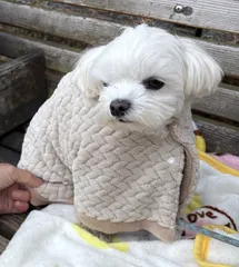 実家のマルチーズ3kgに、犬用着る毛布を着せてみました(ᐡ o̴̶̷̤ ﻌ o̴̶̷̤ ᐡ)https://www.nitori-net.jp/ec/product/2117300030380s/サイズピッタリ✨我が家の7kg、8kgダックスと違って、お腹のボタンも余裕で留められました✌️寒がりのワ