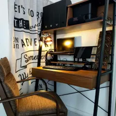 室蘭店 Blue Moon*さん リビングの一角にある自分だけのミニオフィス空間。ノートパソコンとタブレットの同時使いが出来るようにカスタマイズ。 このスペースは私物が多いのが気になる。けど、こだわってこそ、ここでは充実した時間を過ごせる。0.5帖あれば作れる自分の隠れ家★ ニトリネットでチェック