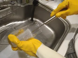 なが~い食器洗い用 水筒や長めのグラスなどを洗う際に棒付きのブラシ?で洗っているのですが、テレ東系の「 ソレダメ」という番組で紹介されていたブラシを新たに買いましてめっちゃお気に入りです!🌟 静止画だと表現できないのですが、押し込むと勝手にブラシが回転する作りになっていて、自分で手を回さなくともゴシゴシ洗える