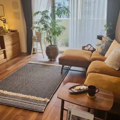 本部 Penさん さらさら気持ちいいコットンラグをアクセントにしたナチュラルなリビング。 お休みの日の午後をゆっくり過ごせます。 ラグの下には低反発のパッドを敷いているのでクッション性が良く、床でくつろいでも快適! ニトリネットでチェック