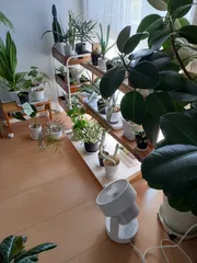 我が家の観葉植物たちに風を送ってます 観葉植物が好きで沢山育てています。なかなか上手に育てるには難しいです。お水だけでなく、光だけでなく、風も重要と知りました。ニトリのサーキュレーターで風を送ってあげています。人間が気持ち良い空間は、植物も気持良いですよね。元気に育ってほしいです。(最近もう一つ欲しいなとか思っています)