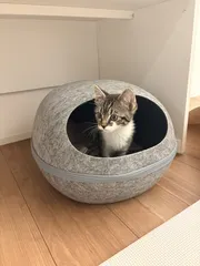 生後2ヶ月の子猫を飼い始めたので、ニトリでドーム型のペットベッドを購入してみました。フェルトのドームですが、中にふわふわの座布団も付いていて、それを出して遊んだり、中で休憩したりとくつろいでいます🐈ペットベッドは、デザインや色もシンプルで、インテリアにも馴染んでいます。